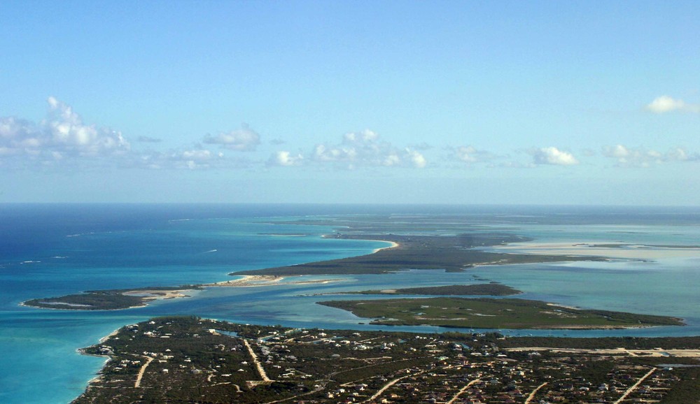 Reserves - (Little Water Cay, Mangrove Cay and Donna Cay), with Water Cay beyond, and Providenciales in the foreground.